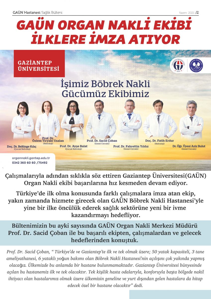 GAÜN HASTANESİ SAĞLIK BÜLTENİNİN KASIM AYI KONUĞU OLDUK